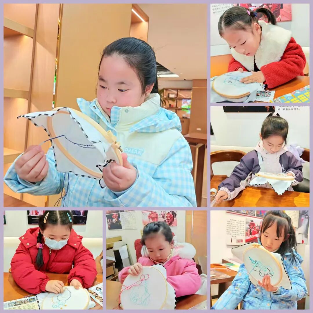 理论讲解结束后,学员们迫不及待拿起绣绷、绣布与针线,在文化志愿者的指导下实操练习。随着银针上下翻飞,轮廓绣勾勒出花草的灵动曲线,缎面绣填充出动物的眼睛立体质感,不一会儿,一朵朵鲜妍的花朵、一只只可爱的兔子便跃然布上,每幅作品都饱含着学员们的巧思与热忱。现场氛围温馨而热烈,学员们沉浸式体验“以针为笔、以线为墨”的非遗乐趣。